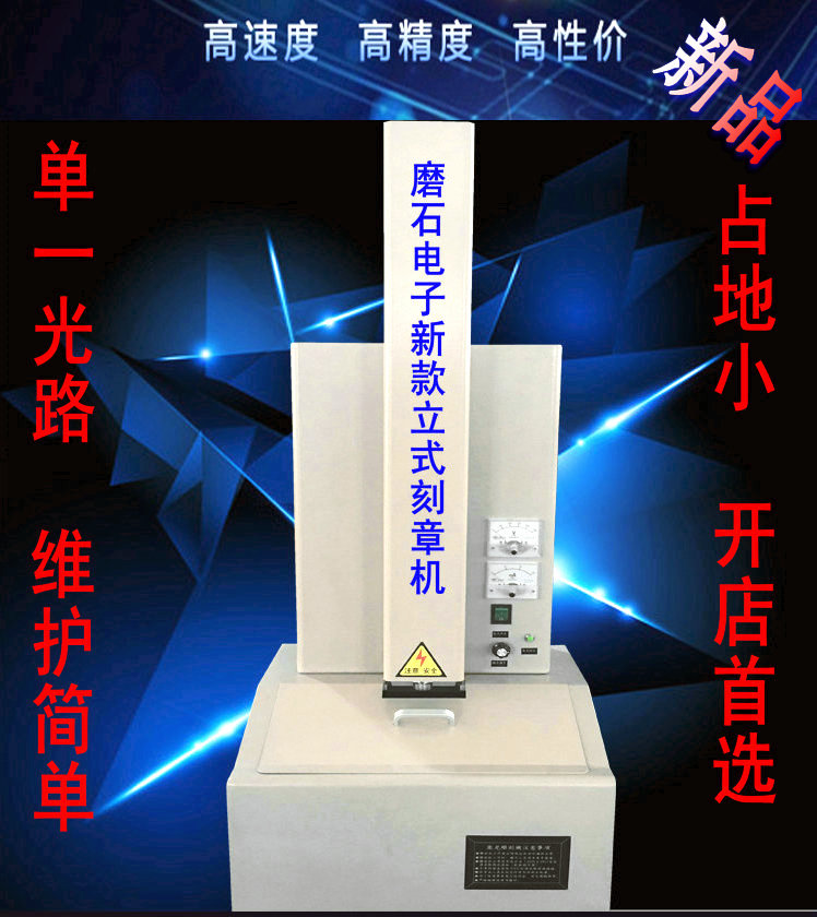 1、立式激光刻章机:激光管直接放置于作业台面的上方,激光束不移动,而是作业台面移动;